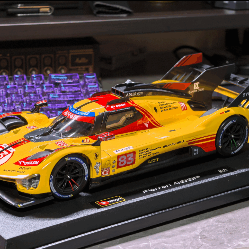 Driven by the legendary Robert Kubica and the talented Yifei Ye, the #83 car, in its stunning and unforgettable Giallo Modena yellow livery, captured the hearts of fans worldwide before capturing the checkered flag. This victory was a masterclass in strategy, reliability, and pure driving skill, making this model a symbol of what’s possible when passion meets performance.