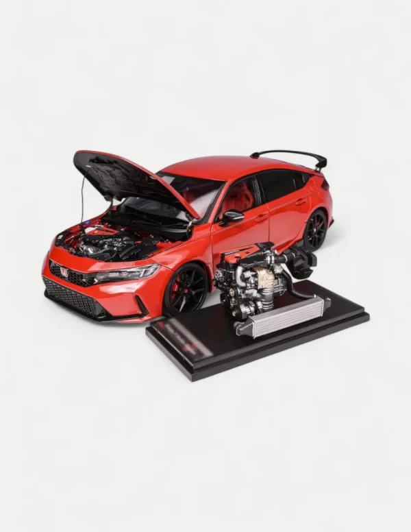 This isn’t just a model of a car; it’s a complete engineering showcase. MOTORHELIX elevates the 1:18 scale experience by presenting the definitive FL5 Type R, and uniquely, including a fully separate, museum-quality replica of its legendary turbocharged heart. This deluxe set allows you to appreciate not only the car’s aggressive form in Rallye Red but also the intricate beauty of the K20C1 engine that powers it, displayed proudly on its own stand. It offers an unparalleled glimpse into the art of modern Japanese performance., with production strictly limited to just 699 units worldwide.