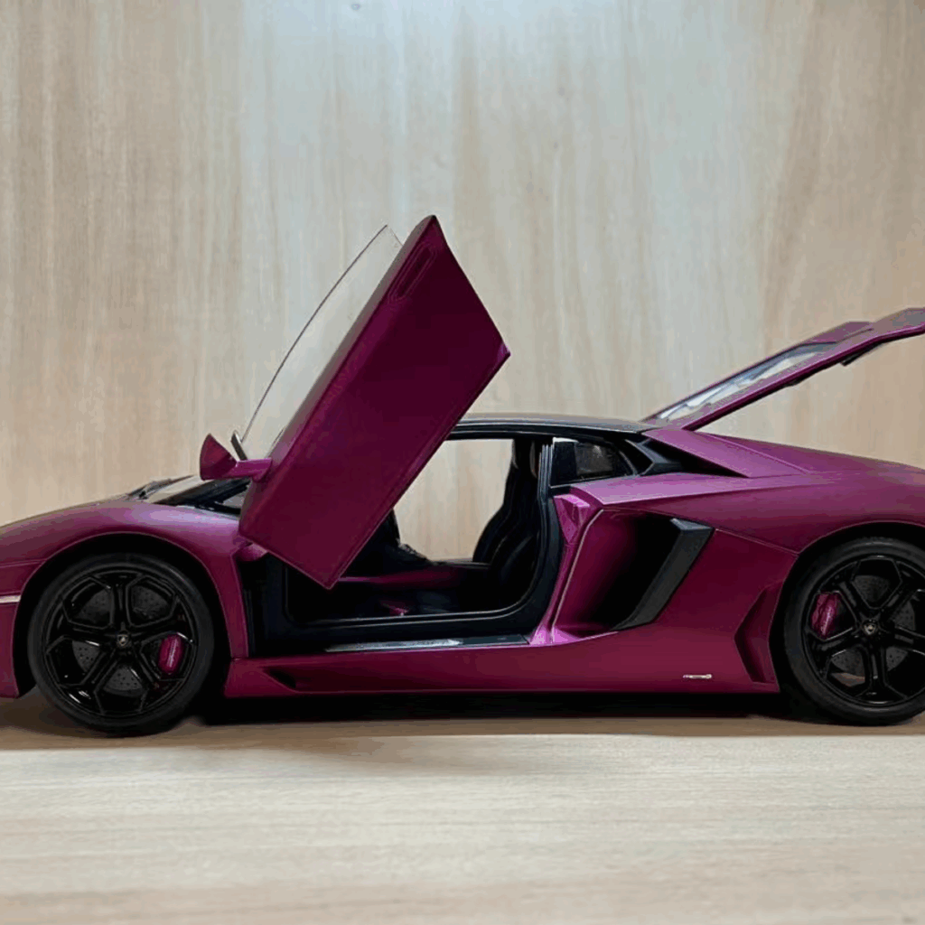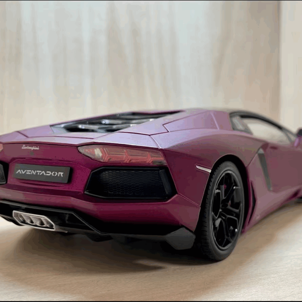 The Welly FX 1/18 scale Lamborghini Aventador LP700-4 diecast model car perfectly captures the iconic design and intricate details of the real supercar. Available in both matte purple and matte black finishes, this model exudes a sense of understated luxury. Featuring opening doors and a hood, it reveals a highly detailed interior, making it an exceptional addition for collectors and enthusiasts.